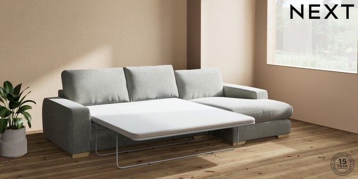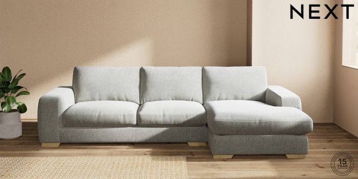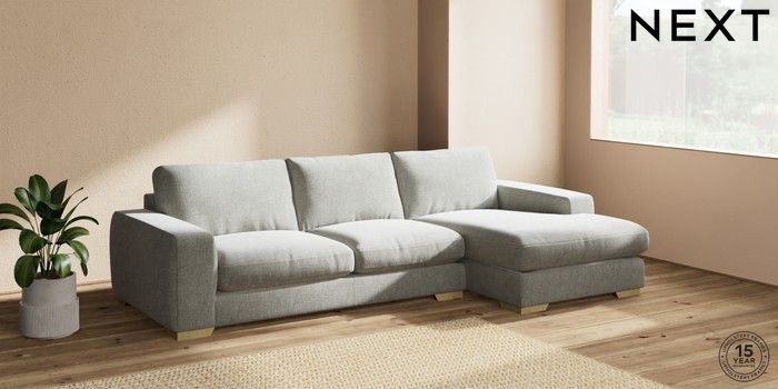 7.2.10 Houghton Deep Relaxed Sit Sofa Chaise Bed - Right Hand Chunky Chenille Light Grey Large Square Angle - Light | Made Click here to use our website with more accessibility support, for example screen readers