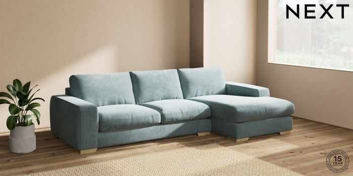 7.2.10 Houghton Deep Relaxed Sit Sofa Chaise Bed - Right Hand Chunky Chenille Light Teal Green Large Square Angle - Light | Made Click here to use our website with more accessibility support, for example screen readers