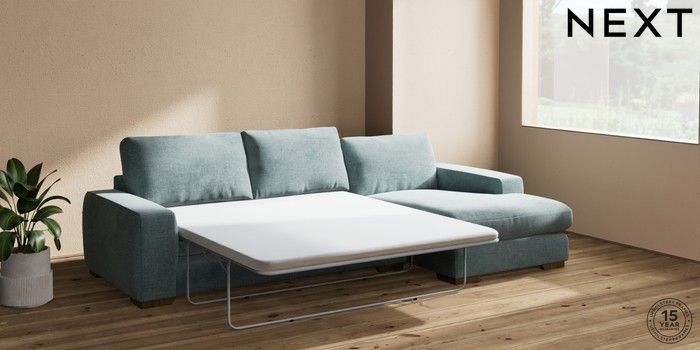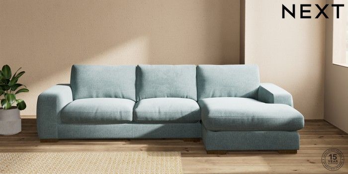 7.2.10 Houghton Deep Relaxed Sit Sofa Chaise Bed - Right Hand Chunky Chenille Light Teal Green Large Square Angle - Mid | Made Click here to use our website with more accessibility support, for example screen readers