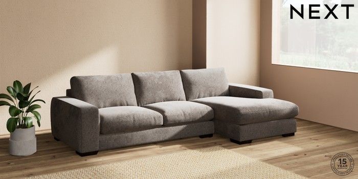 7.2.10 Houghton Deep Relaxed Sit Sofa Chaise Bed - Right Hand Chunky Chenille Mink Brown Large Square Angle - Dark | Made Click here to use our website with more accessibility support, for example screen readers
