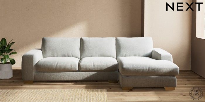 7.2.10 Houghton Deep Relaxed Sit Sofa Chaise Bed - Right Hand Chunky Texture Dove Large Square Angle - Brushed Brass | Made Click here to use our website with more accessibility support, for example screen readers