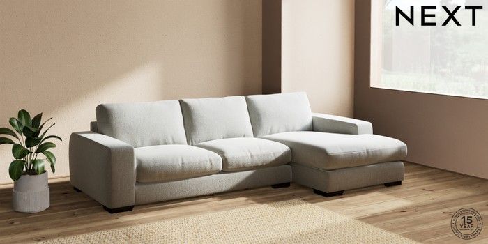 7.2.10 Houghton Deep Relaxed Sit Sofa Chaise Bed - Right Hand Chunky Texture Dove Large Square Angle - Dark | Made Click here to use our website with more accessibility support, for example screen readers