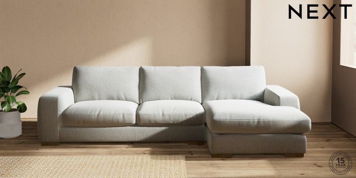 7.2.10 Houghton Deep Relaxed Sit Sofa Chaise Bed - Right Hand Chunky Texture Dove Large Square Angle - Mid | Made Click here to use our website with more accessibility support, for example screen readers