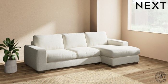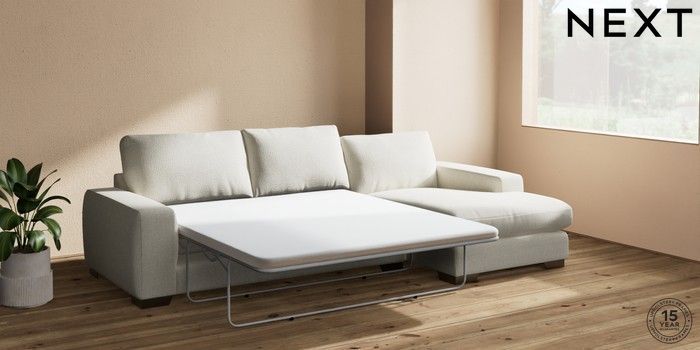 7.2.10 Houghton Deep Relaxed Sit Sofa Chaise Bed - Right Hand Chunky Texture Oyster Large Square Angle - Gunmetal | Made Click here to use our website with more accessibility support, for example screen readers