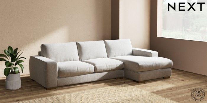 7.2.10 Houghton Deep Relaxed Sit Sofa Chaise Bed - Right Hand Chunky Weave Dove Grey Large Square Angle - Mid | Made Click here to use our website with more accessibility support, for example screen readers