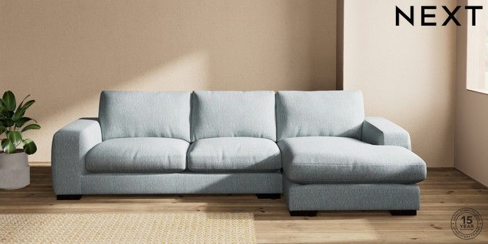 7.2.10 Houghton Deep Relaxed Sit Sofa Chaise Bed - Right Hand Chunky Weave Mid Blue Large Square Angle - Dark | Made Click here to use our website with more accessibility support, for example screen readers