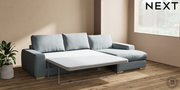 The Houghton sofa is chunky, stylish, and incredibly comfortable, boasting a contemporary design with bold square arms and generous, deep seats perfect for snuggling. It features our "Relaxed Sit" cushions, specially developed with high-density foam pieces in channels and wrapped in fibre. This innovative design gives you excellent comfort and a wonderfully plump, relaxed look. These cushions offer a softer sit and will stay looking their best with a little regular plumping and turning. They're also reversible for extra convenience. This range has a sofa bed. Sofa beds are a practical and comfortable addition to any home, big or small. Our sofa beds are pull-out beds containing a separate 6cm occasional foam mattress. This pull-out mechanism is concealed underneath the main cushions. We have sofa beds across multiple ranges, but they all are 120cm in width and 180cm in length, so we suggest a double duvet and a double flat sheet to dress your sofa bed.
