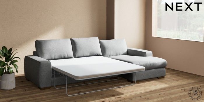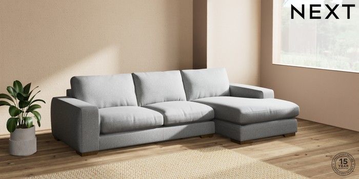 7.2.10 Houghton Deep Relaxed Sit Sofa Chaise Bed - Right Hand Chunky Weave Mid Grey Large Square Angle - Mid | Made Click here to use our website with more accessibility support, for example screen readers
