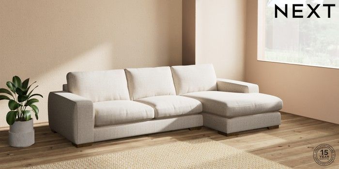 7.2.10 Houghton Deep Relaxed Sit Sofa Chaise Bed - Right Hand Chunky Weave Mid Natural Large Square Angle - Mid | Made Click here to use our website with more accessibility support, for example screen readers