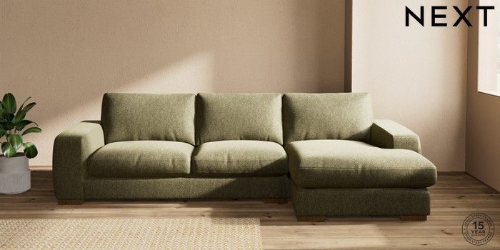 7.2.10 Houghton Deep Relaxed Sit Sofa Chaise Bed - Right Hand Cotswold Chenille Dark Green Large Square Angle - Mid | Made Click here to use our website with more accessibility support, for example screen readers