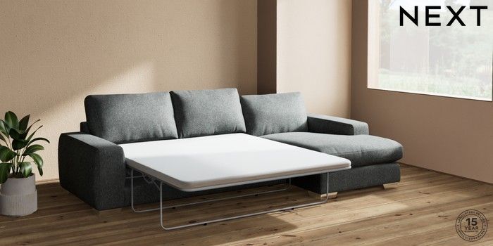 7.2.10 Houghton Deep Relaxed Sit Sofa Chaise Bed - Right Hand Cotswold Chenille Dark Grey Large Square Angle - Chrome Metal | Made Click here to use our website with more accessibility support, for example screen readers