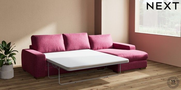 The Houghton sofa is chunky, stylish, and incredibly comfortable, boasting a contemporary design with bold square arms and generous, deep seats perfect for snuggling. It features our "Relaxed Sit" cushions, specially developed with high-density foam pieces in channels and wrapped in fibre. This innovative design gives you excellent comfort and a wonderfully plump, relaxed look. These cushions offer a softer sit and will stay looking their best with a little regular plumping and turning. They're also reversible for extra convenience. This range has a sofa bed. Sofa beds are a practical and comfortable addition to any home, big or small. Our sofa beds are pull-out beds containing a separate 6cm occasional foam mattress. This pull-out mechanism is concealed underneath the main cushions. We have sofa beds across multiple ranges, but they all are 120cm in width and 180cm in length, so we suggest a double duvet and a double flat sheet to dress your sofa bed.