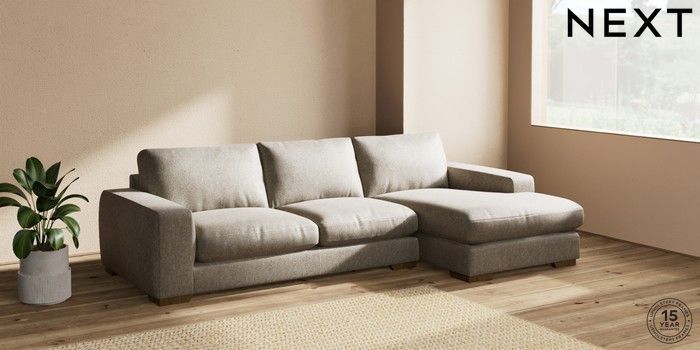 7.2.10 Houghton Deep Relaxed Sit Sofa Chaise Bed - Right Hand Cotswold Chenille Mid Mink Brown Large Square Angle - Mid | Made Click here to use our website with more accessibility support, for example screen readers