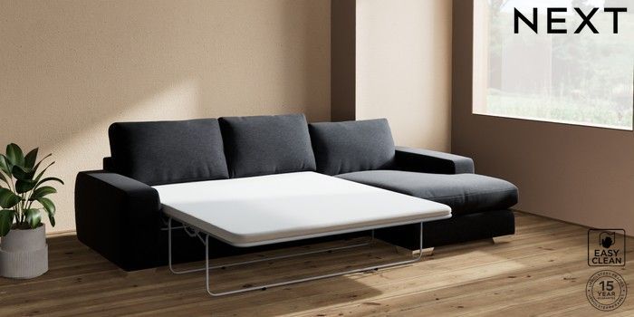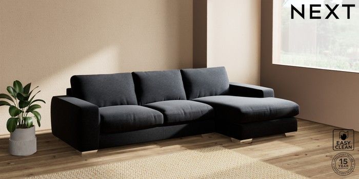 7.2.10 Houghton Deep Relaxed Sit Sofa Chaise Bed - Right Hand Fine Chenille Easy Clean Black Large Square Angle - Chrome Metal | Made Click here to use our website with more accessibility support, for example screen readers