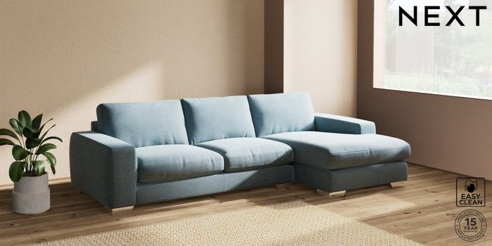 7.2.10 Houghton Deep Relaxed Sit Sofa Chaise Bed - Right Hand Fine Chenille Easy Clean Mid Blue Large Square Angle - Chrome Metal | Made Click here to use our website with more accessibility support, for example screen readers
