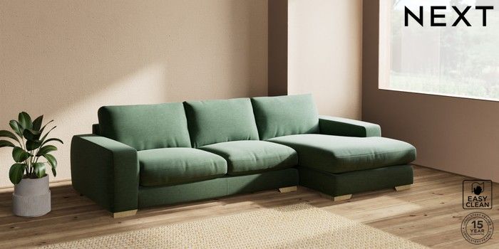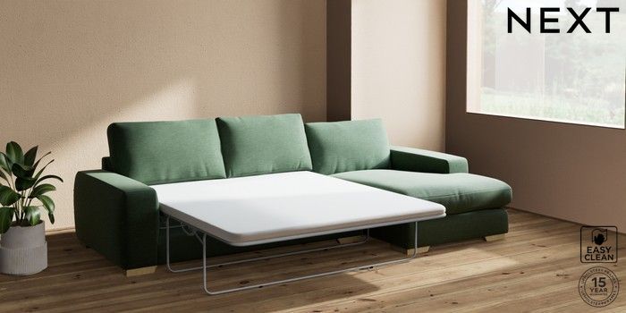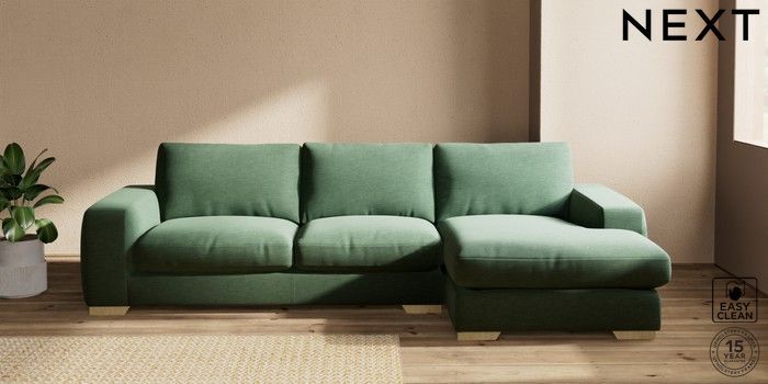 7.2.10 Houghton Deep Relaxed Sit Sofa Chaise Bed - Right Hand Fine Chenille Easy Clean Mid Khaki Green Large Square Angle - Light | Made Click here to use our website with more accessibility support, for example screen readers