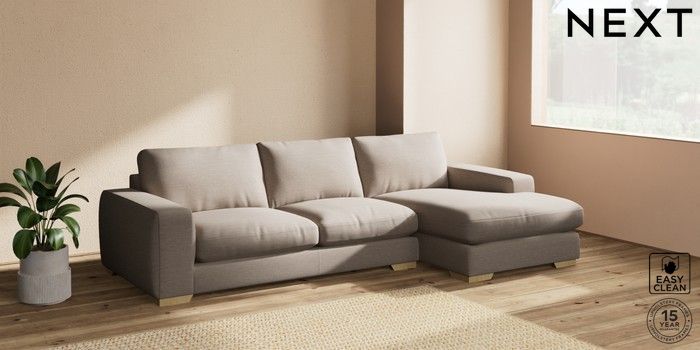 7.2.10 Houghton Deep Relaxed Sit Sofa Chaise Bed - Right Hand Fine Chenille Easy Clean Mid Taupe Brown Large Square Angle - Light | Made Click here to use our website with more accessibility support, for example screen readers