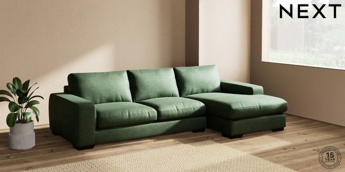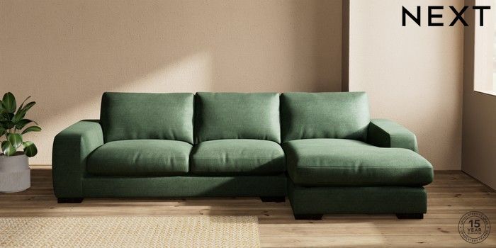 7.2.10 Houghton Deep Relaxed Sit Sofa Chaise Bed - Right Hand Luxe Chenille Dark Green Large Square Angle - Dark | Made Click here to use our website with more accessibility support, for example screen readers