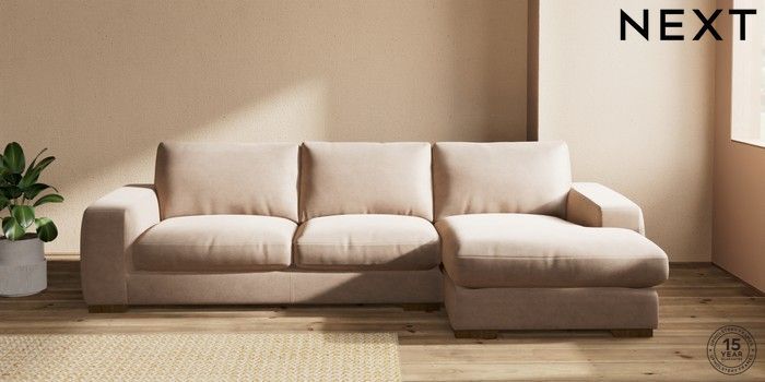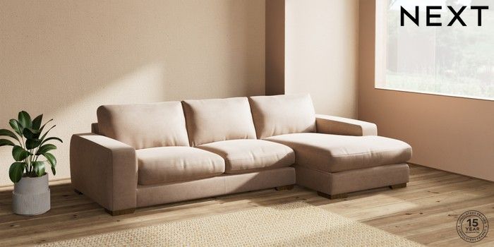 7.2.10 Houghton Deep Relaxed Sit Sofa Chaise Bed - Right Hand Luxe Chenille Mid Natural Large Square Angle - Mid | Made Click here to use our website with more accessibility support, for example screen readers