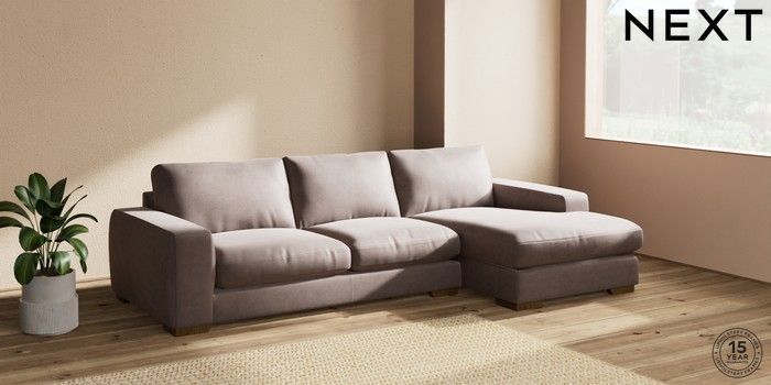7.2.10 Houghton Deep Relaxed Sit Sofa Chaise Bed - Right Hand Luxe Chenille Mink Brown Large Square Angle - Mid | Made Click here to use our website with more accessibility support, for example screen readers