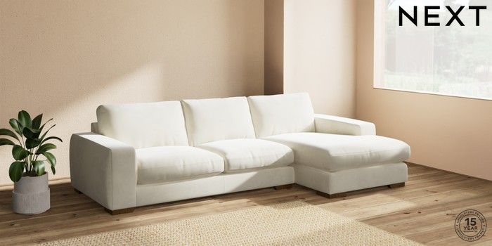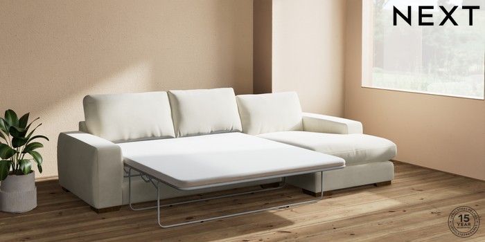 7.2.10 Houghton Deep Relaxed Sit Sofa Chaise Bed - Right Hand Luxe Chenille Oyster Large Square Angle - Mid | Made Click here to use our website with more accessibility support, for example screen readers