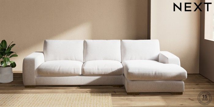 7.2.10 Houghton Deep Relaxed Sit Sofa Chaise Bed - Right Hand Multi Weave Oyster Large Square Angle - Mid | Made Click here to use our website with more accessibility support, for example screen readers