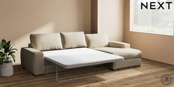 7.2.10 Houghton Deep Relaxed Sit Sofa Chaise Bed - Right Hand Natural Mix Light Natural Large Square Angle - Mid | Made Click here to use our website with more accessibility support, for example screen readers