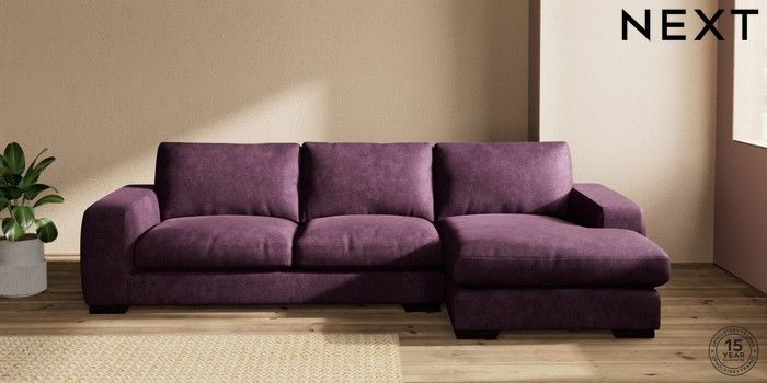 7.2.10 Houghton Deep Relaxed Sit Sofa Chaise Bed - Right Hand Plush Chenille Dark Plum Purple Large Square Angle - Dark | Made Click here to use our website with more accessibility support, for example screen readers