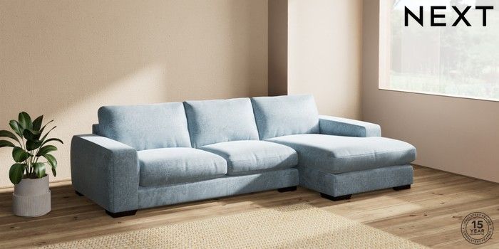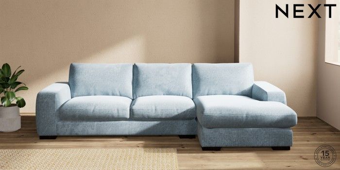 7.2.10 Houghton Deep Relaxed Sit Sofa Chaise Bed - Right Hand Plush Chenille Light Blue Large Square Angle - Dark | Made Click here to use our website with more accessibility support, for example screen readers