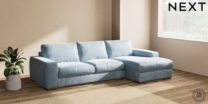 7.2.10 Houghton Deep Relaxed Sit Sofa Chaise Bed - Right Hand Plush Chenille Light Blue Large Square Angle - Mid | Made Click here to use our website with more accessibility support, for example screen readers