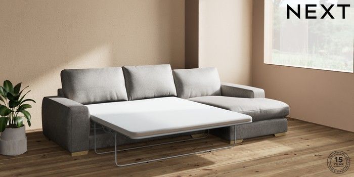 7.2.10 Houghton Deep Relaxed Sit Sofa Chaise Bed - Right Hand Plush Chenille Light Grey Large Square Angle - Light | Made Click here to use our website with more accessibility support, for example screen readers
