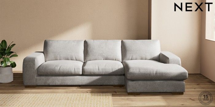 7.2.10 Houghton Deep Relaxed Sit Sofa Chaise Bed - Right Hand Plush Chenille Light Grey Large Square Angle - Mid | Made Click here to use our website with more accessibility support, for example screen readers