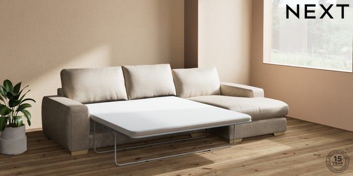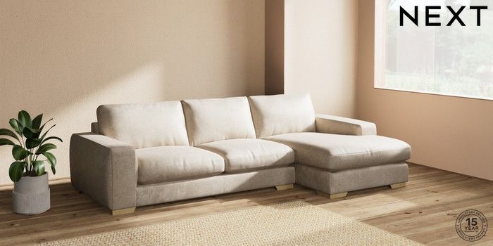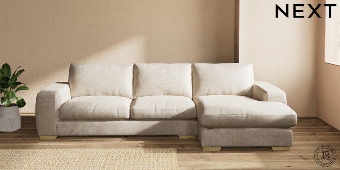 7.2.10 Houghton Deep Relaxed Sit Sofa Chaise Bed - Right Hand Plush Chenille Light Natural Large Square Angle - Light | Made Click here to use our website with more accessibility support, for example screen readers