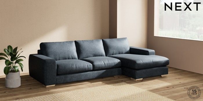 7.2.10 Houghton Deep Relaxed Sit Sofa Chaise Bed - Right Hand Plush Chenille Slate Blue Large Square Angle - Chrome Metal | Made Click here to use our website with more accessibility support, for example screen readers