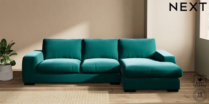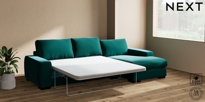 7.2.10 Houghton Deep Relaxed Sit Sofa Chaise Bed - Right Hand Plush Velvet Easy Clean Juniper Green Large Square Angle - Dark | Made Click here to use our website with more accessibility support, for example screen readers