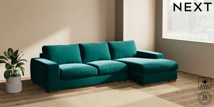 7.2.10 Houghton Deep Relaxed Sit Sofa Chaise Bed - Right Hand Plush Velvet Easy Clean Juniper Green Large Square Angle - Mid | Made Click here to use our website with more accessibility support, for example screen readers