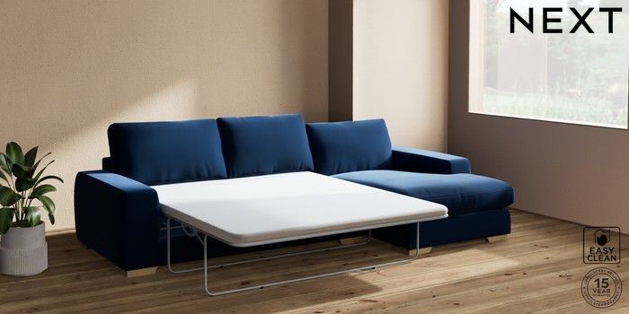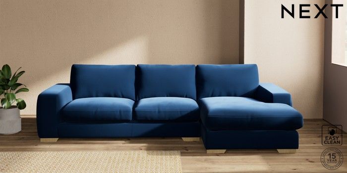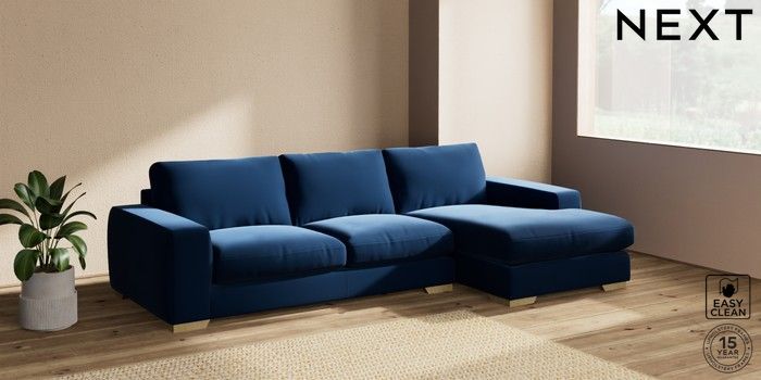 7.2.10 Houghton Deep Relaxed Sit Sofa Chaise Bed - Right Hand Plush Velvet Easy Clean Navy Blue Large Square Angle - Light | Made Click here to use our website with more accessibility support, for example screen readers