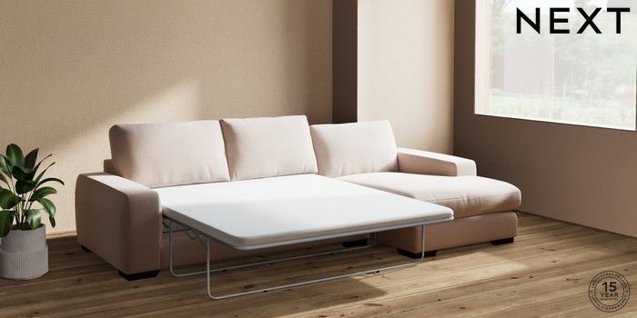7.2.10 Houghton Deep Relaxed Sit Sofa Chaise Bed - Right Hand Relaxed Linen Look Mid Natural Large Square Angle - Dark | Made Click here to use our website with more accessibility support, for example screen readers