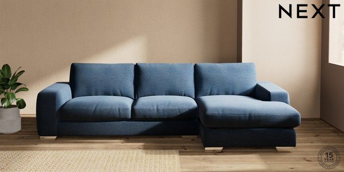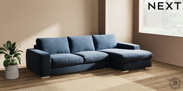 7.2.10 Houghton Deep Relaxed Sit Sofa Chaise Bed - Right Hand Ripple Chenille Dark Blue Large Square Angle - Chrome Metal | Made Click here to use our website with more accessibility support, for example screen readers