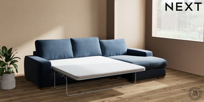 7.2.10 Houghton Deep Relaxed Sit Sofa Chaise Bed - Right Hand Ripple Chenille Dark Blue Large Square Angle - Mid | Made Click here to use our website with more accessibility support, for example screen readers