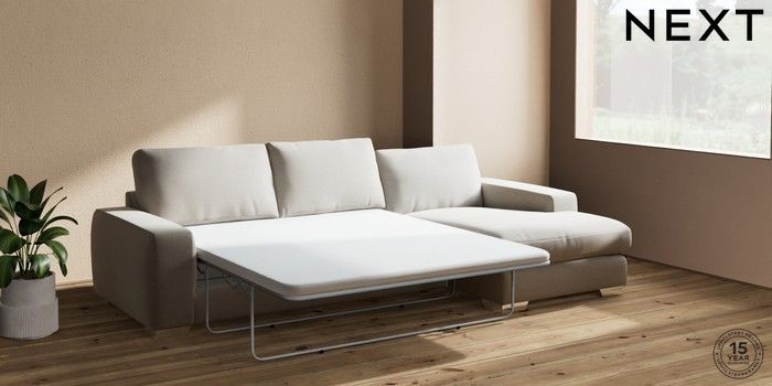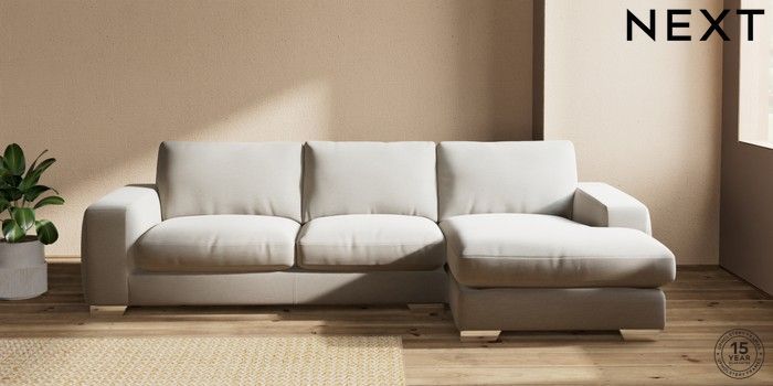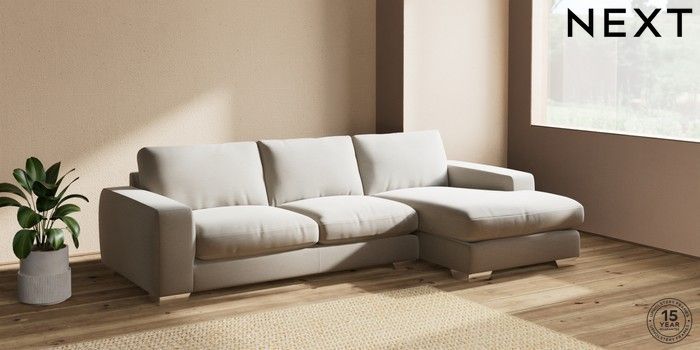 7.2.10 Houghton Deep Relaxed Sit Sofa Chaise Bed - Right Hand Ripple Chenille Light Natural Large Square Angle - Chrome Metal | Made Click here to use our website with more accessibility support, for example screen readers