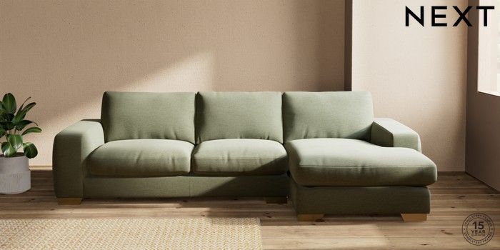 7.2.10 Houghton Deep Relaxed Sit Sofa Chaise Bed - Right Hand Ripple Chenille Mid Moss Green Large Square Angle - Brushed Brass | Made Click here to use our website with more accessibility support, for example screen readers