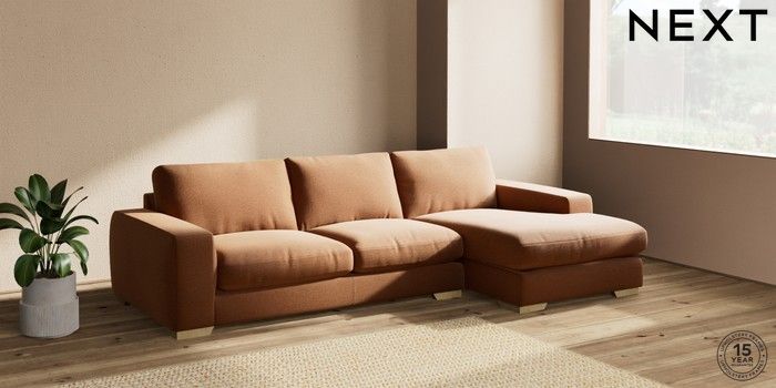 7.2.10 Houghton Deep Relaxed Sit Sofa Chaise Bed - Right Hand Ripple Chenille Mid Rust Brown Large Square Angle - Light | Made Click here to use our website with more accessibility support, for example screen readers