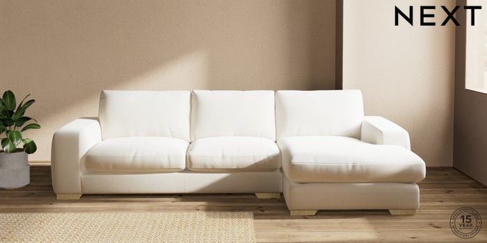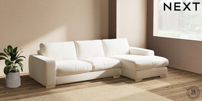 7.2.10 Houghton Deep Relaxed Sit Sofa Chaise Bed - Right Hand Ripple Chenille Oyster Large Square Angle - Light | Made Click here to use our website with more accessibility support, for example screen readers