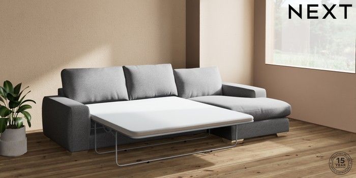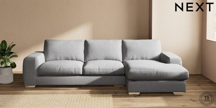 7.2.10 Houghton Deep Relaxed Sit Sofa Chaise Bed - Right Hand Studio Chenille Mid Grey Large Square Angle - Chrome Metal | Made Click here to use our website with more accessibility support, for example screen readers