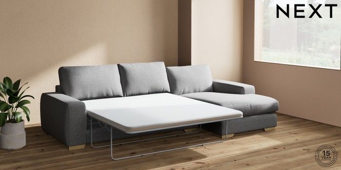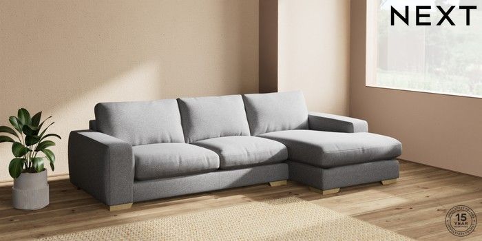 7.2.10 Houghton Deep Relaxed Sit Sofa Chaise Bed - Right Hand Studio Chenille Mid Grey Large Square Angle - Light | Made Click here to use our website with more accessibility support, for example screen readers