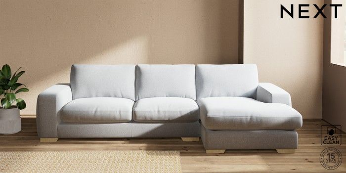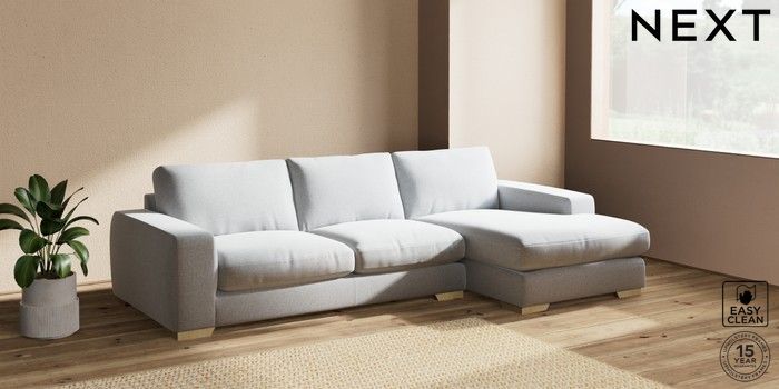 7.2.10 Houghton Deep Relaxed Sit Sofa Chaise Bed - Right Hand Tweedy Blend Easy Clean Light Silver Grey Large Square Angle - Light | Made Click here to use our website with more accessibility support, for example screen readers