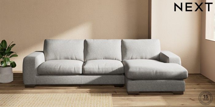 7.2.10 Houghton Deep Relaxed Sit Sofa Chaise Bed - Right Hand Tweedy Chenille Mid Grey Large Square Angle - Gunmetal | Made Click here to use our website with more accessibility support, for example screen readers