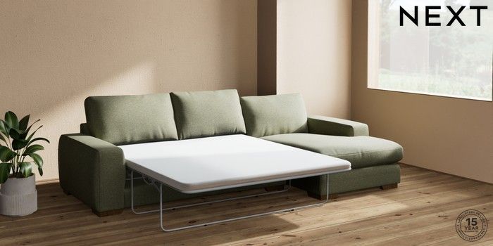 The Houghton sofa is chunky, stylish, and incredibly comfortable, boasting a contemporary design with bold square arms and generous, deep seats perfect for snuggling. It features our "Relaxed Sit" cushions, specially developed with high-density foam pieces in channels and wrapped in fibre. This innovative design gives you excellent comfort and a wonderfully plump, relaxed look. These cushions offer a softer sit and will stay looking their best with a little regular plumping and turning. They're also reversible for extra convenience. This range has a sofa bed. Sofa beds are a practical and comfortable addition to any home, big or small. Our sofa beds are pull-out beds containing a separate 6cm occasional foam mattress. This pull-out mechanism is concealed underneath the main cushions. We have sofa beds across multiple ranges, but they all are 120cm in width and 180cm in length, so we suggest a double duvet and a double flat sheet to dress your sofa bed.