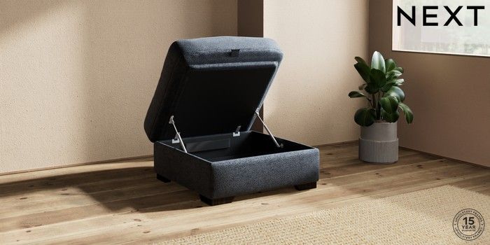 7.2.10 Houghton Deep Relaxed Sit Storage Footstool Boucle Chenille Dark Slate Blue Square Angle - Dark | Made Click here to use our website with more accessibility support, for example screen readers